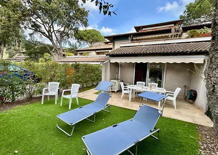 Plaża La Fossette znajduje się 10 min jazdy samochodem od 1-pokojowego Ground Floor Apartment With Garden Le Lavandou, a Ogród botaniczny Domaine du Rayol - 5 km.